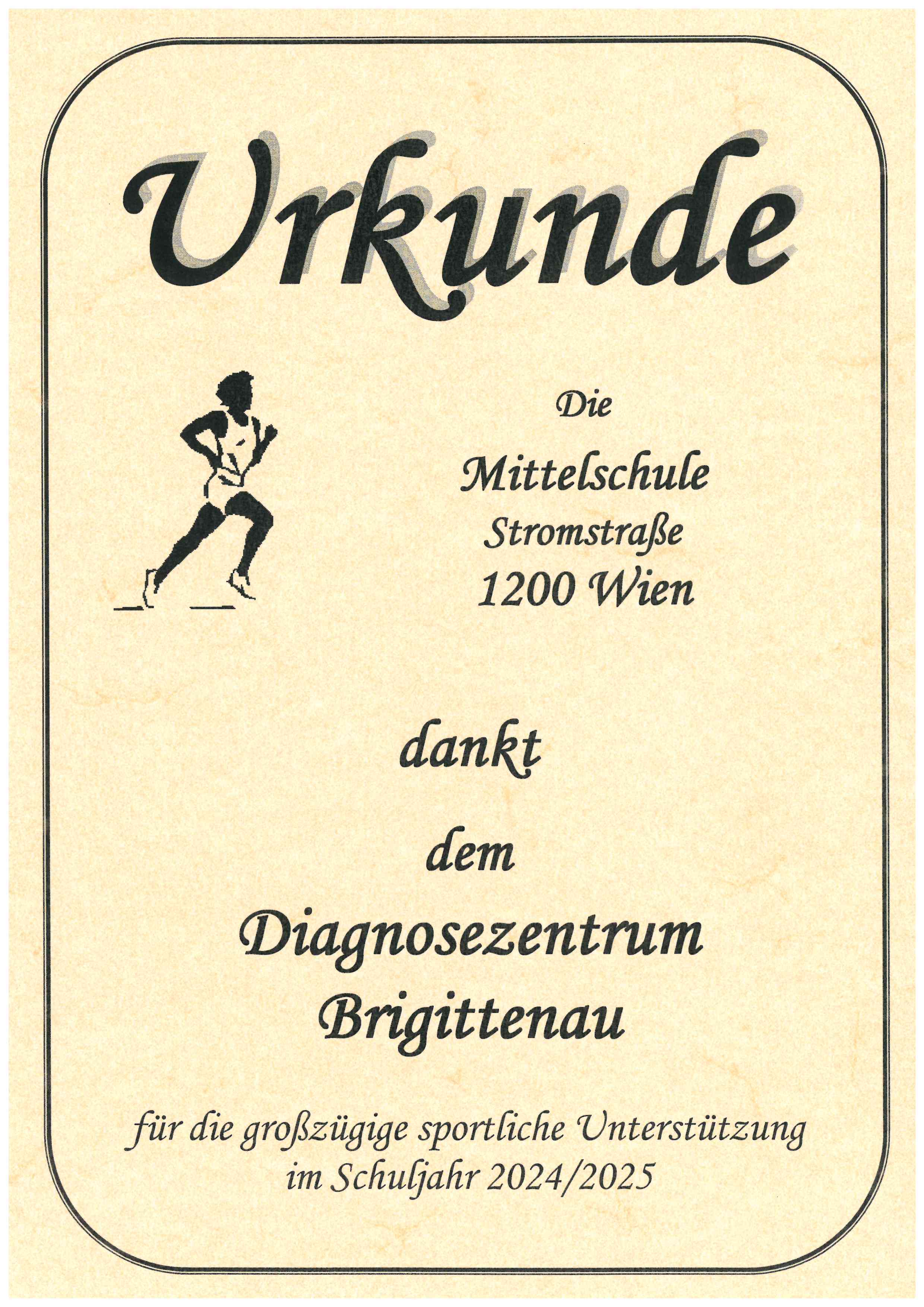 Herzlichen Dank an die Mittelschule Stromstraße 1200 Wien und für das gelebte Engagement für die österreichischen Schülersporthilfe.
