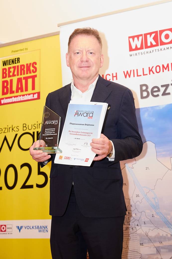 Im Zuge des durch das Wiener Bezirksblatt durchgeführten Online-Votings mit rd. 130.000 abgegebenen Stimmen hat das Diagnosezentrum Brigittenau den Medical Award für 2025 für besondere Leistungen im Gesundheitsbereich erhalten.